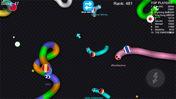 2、你可以通过抢夺其他玩家留下的食物或追逐和阻挡他们的蛇群,让他们意外地撞到你。