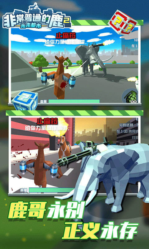 非常普通的鹿2是一款超有趣的动作冒险类游戏,在未来都市中开启独属于你和小鹿的冒险吧,采用全视角的游戏画面,在这里玩家可以自由操控小鹿来到异世界中,并穿梭在各个城市角落中,通过行走、奔跑等方式,不断触发游戏任务,并遇到各种动物进行战斗,来一场刺激激烈的战斗吧,独特的像素风格画面,和各种类的动物们一起开启一段独特的冒险旅程,各种恶搞事物等你体验。