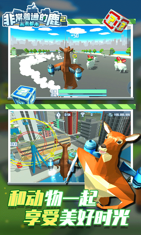 1、进入非常普通的鹿2正版手游就可以看到未来都市的场景非常不一样