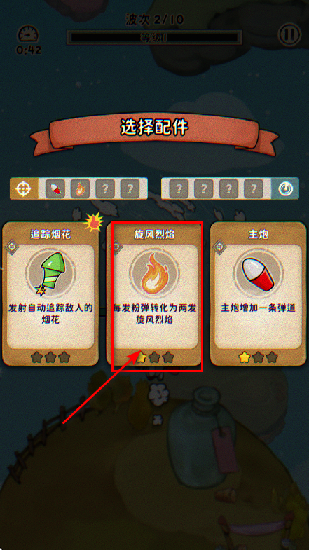 4、消灭敌人会增加经验值,经验值满后可以从三个配件里选择一个强化自己。