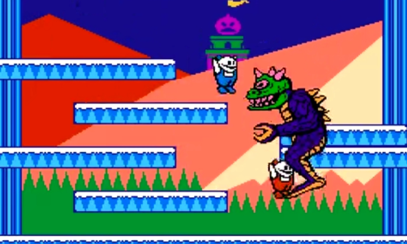 雪人兄弟游戏构建了一个充满魔幻色彩的冰雪王国,玩家可选择操控身穿蓝围巾的尼克(Nick)或红围巾的汤姆(Tom),两位雪人兄弟的形象设计堪称像素艺术的典范——圆润的雪球身体搭配胡萝卜鼻子,奔跑时会留下可爱的雪痕,被敌人击中时则会碎裂成三个小雪人重新组合。这种充满童真的角色设定,配合每关开头"公主被邪恶巫师绑架"的简笔画过场,成功营造出宛如立体童话书的沉浸感。