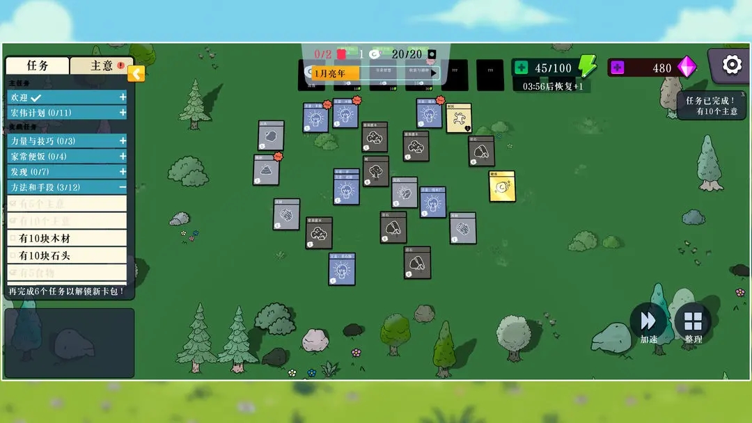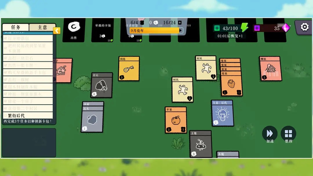1、每张卡牌代表不同的功能或角色,例如采集木材、开采矿石或召唤村民劳动。这种操作方式既直观又富有策略性,需要合理安排卡牌顺序与搭配。