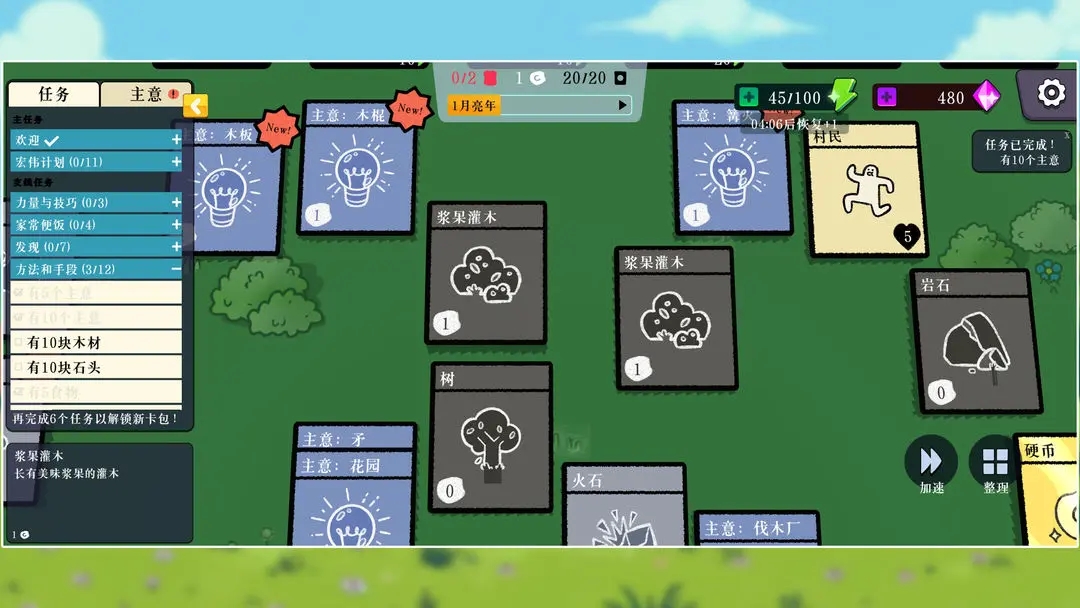 2、可以获得很多的卡牌,比如村民、木材、岩石等。