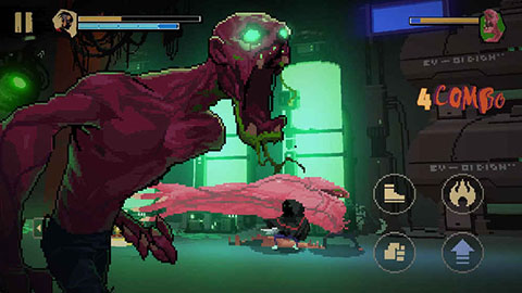游戏整体的打击感十分优秀,将战斗的自由度与创造性尽可能展现的极致而真实。并且对于角色打击的“夸张感”拿捏得十分到位,中距攻击上的“肢体撕裂”让整个攻击动作充满力量感,尽管游戏以像素风来描绘主角与敌人,但攻击动作中细节并不少。
