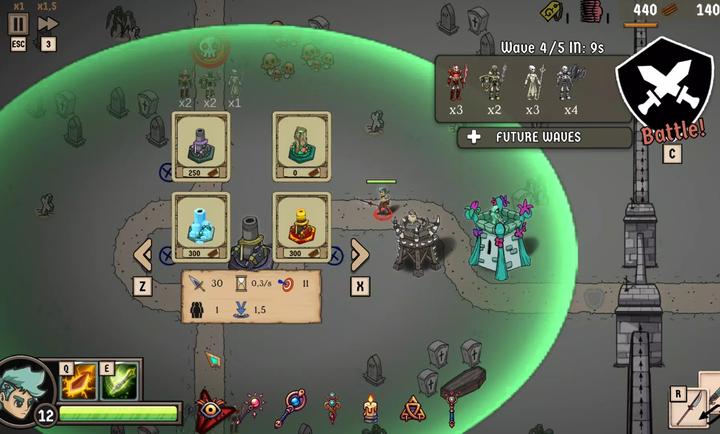 4、游戏总共有四波进攻,一波成功防御住可选择新的技能,帮助你更快消灭敌人。