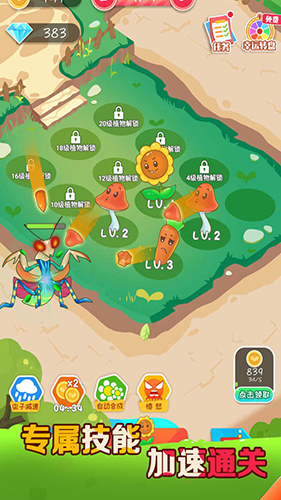 4、双倍阳光奖励: 击败虫子,享受双倍阳光的丰收喜悦,快速升级你的植物军团。