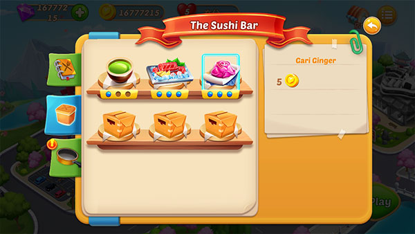 5、不同的游戏场景,需要逐步的进行道具和餐厅的升级改造