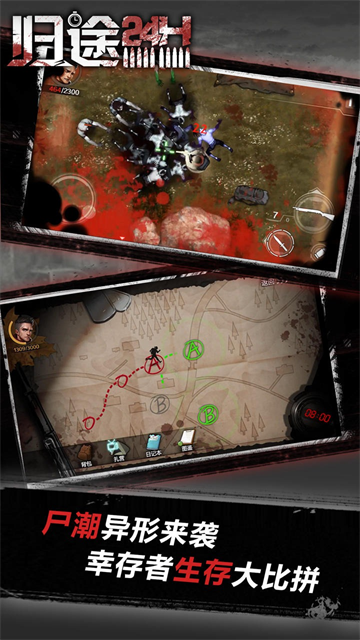 归途24小时是由深圳市掌上乐游科技有限公司研发出品的以末日求生为题材的动作射击类手游,并通过暗黑的画面风格、逼真的地图场景、真实的美术渲染为玩家营造出紧张刺激的游戏氛围,极大的提升了玩家游玩时的带入感。不仅如此,游戏还拥有4个角色可选,并且每个角色都有其独立的主线、能力、天赋、可使用的物品等,为用户带来丰富多样的游玩体验。