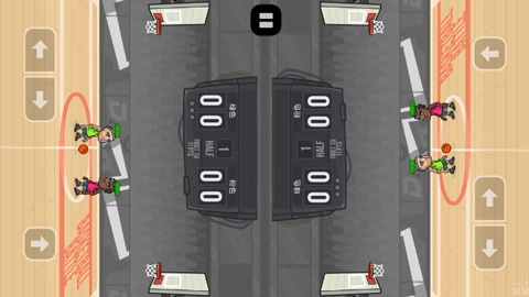游戏中我们按住屏幕左下角的两个箭头可以控制角色移动,用手指按住屏幕右侧空白区域可以控制角色跳投,不过跳投的时候的注意一点,在主角跳到空中的时候就得放开手指,否者我们的角色是不会将篮球投出去的。