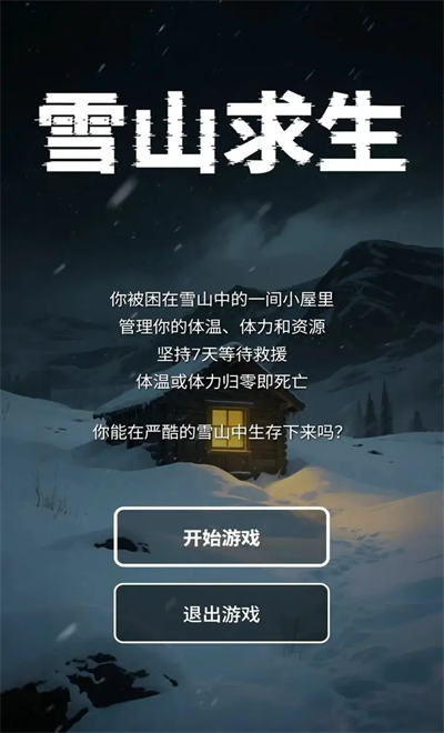 1、雪山求生游戏是一款生存主题冒险文字游戏,背景设定在暴风雪肆虐的偏远雪山之中。