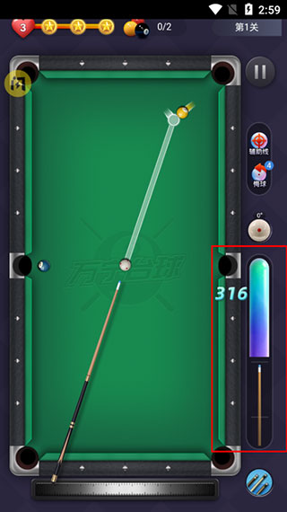 4、操作也是非常简单,滑动球杆挑战方向,使用右边的能量条来控制力度;