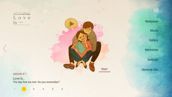 1、打开爱是在小事上游戏,点击屏幕开始;
