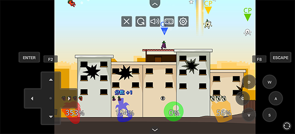 键位映射:箭头=AD = 移动,W = 跳跃,S = 下蹲,J = 攻击,K = 投掷,SHIFT= 防御,P = 暂停