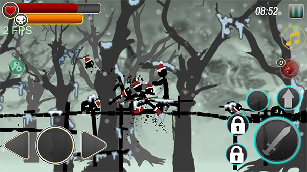 1、暗黑简约的游戏画面,热血刺激的游戏玩法,让玩家清楚的享受火柴人热血冒险。