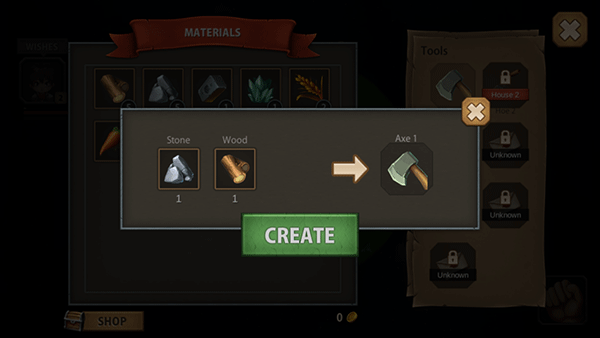 -第一步是创建工作所需的工具:耕田的锄头、劈材的斧头、建筑用的锤子等。