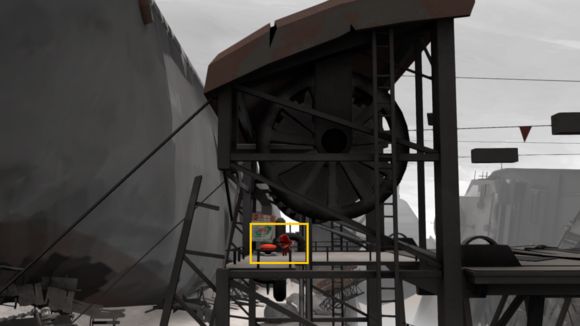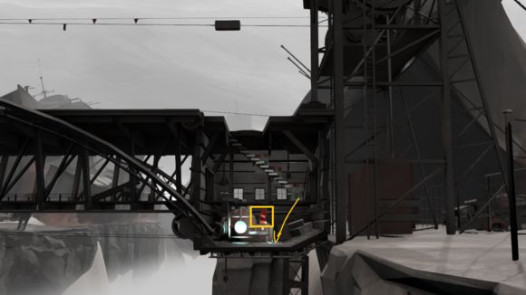 6、基本没什么难度,下车一直走,来到桥另一头,这里把那个油桶放到箭头处,按下开关ok了。