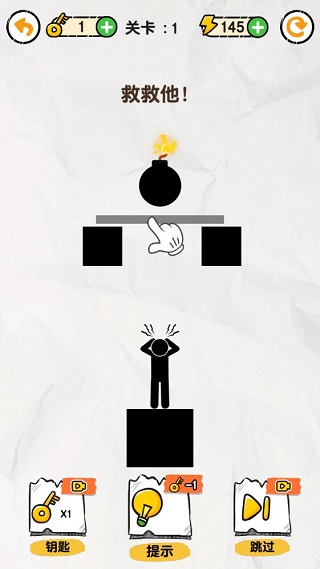 3、游戏采用简约的黑白画风,以火柴人为主角,通过简单的线条勾勒出各种有趣的场景和道具。这种画风不仅符合游戏的主题,还为玩家带来了一种清新、简洁的视觉体验。