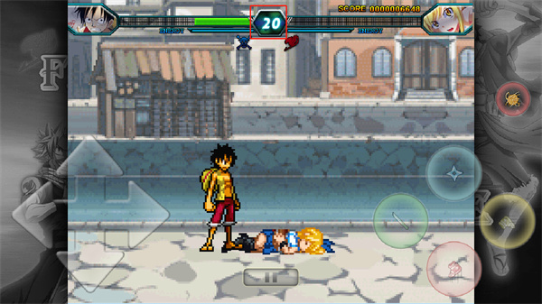 妖尾VS海贼王是一款动漫改编制作而来的格斗游戏,游戏将《妖精的尾巴》与《海贼王》两个著名IP相融合,让玩家体验扮演动漫角色的乐趣。游戏中还原了许多的经典人物,如路飞、艾斯、艾特利亚斯等经典人物,玩家可以通过选择角色展开精彩刺激的决斗。游戏中有练习模式供你练习连招,学习技术,还有人机模式和闯关模式供你游玩,趣味十足。