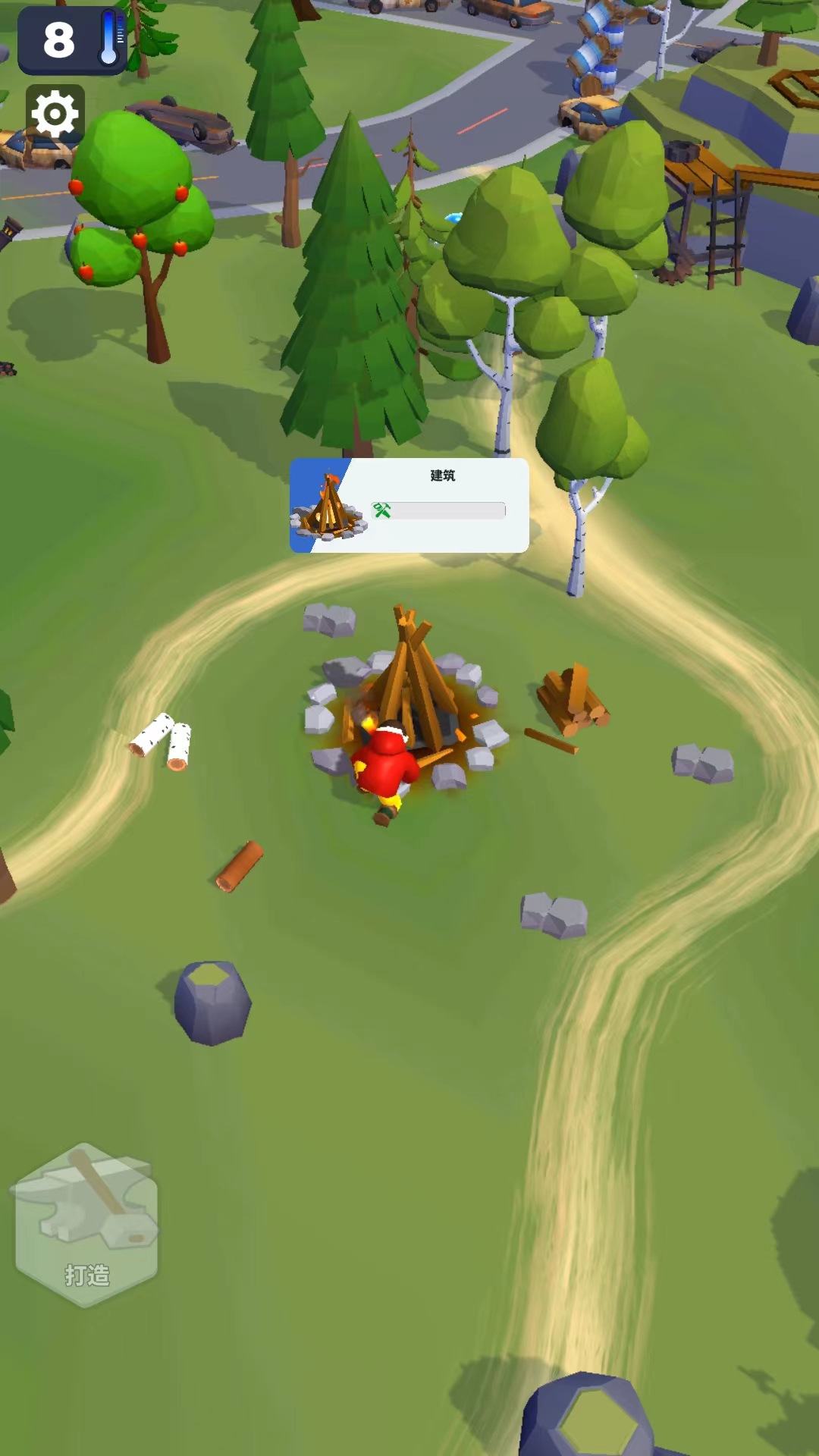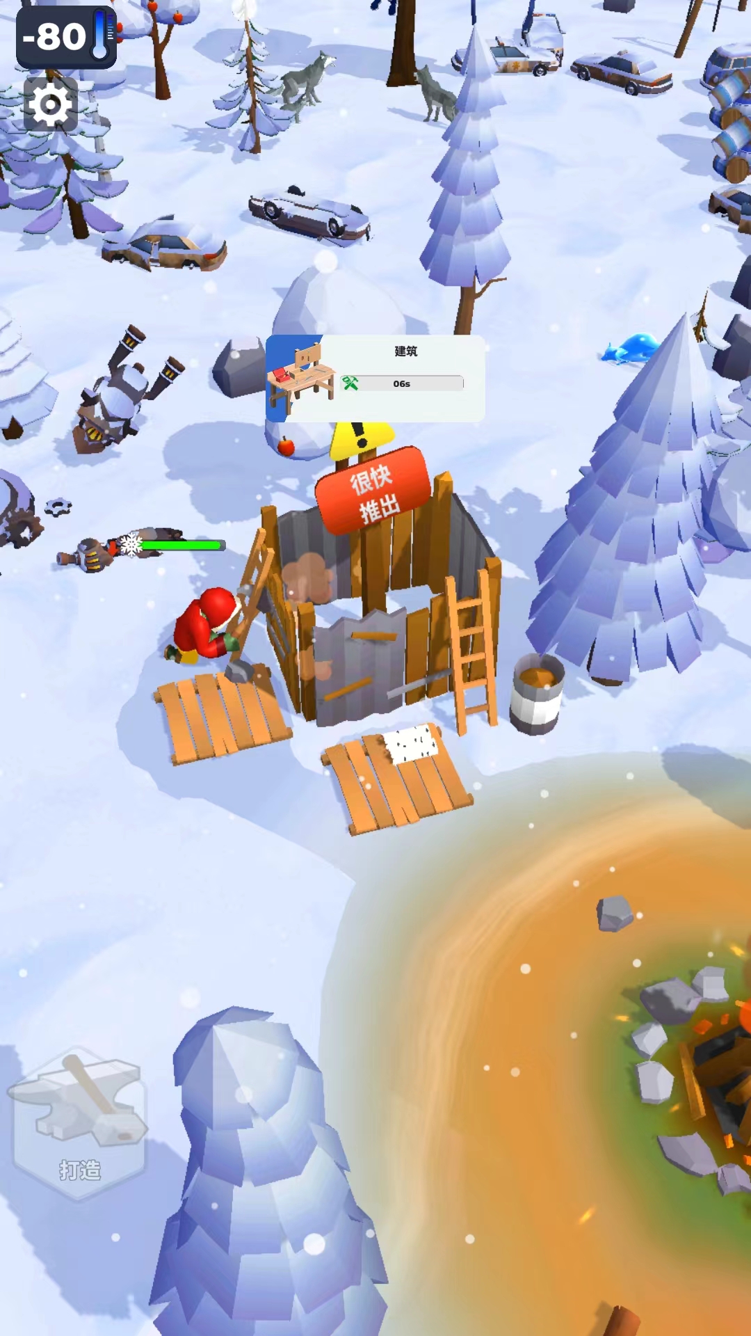 6、在建造的过程中,我们可以看到主角忙碌的样子,同时还会搭配模拟的声音,