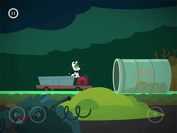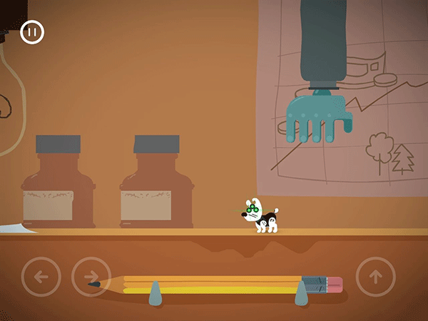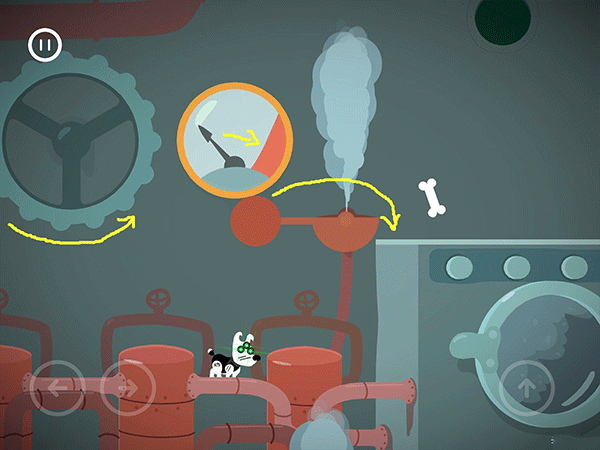 这边按了左边黄色按钮的时候,右边的门就开始计时下落了。这个板要先从右往左把板弄到最低,然后就可以吃完灯泡和骨头过闸门。切记不要慌张。
