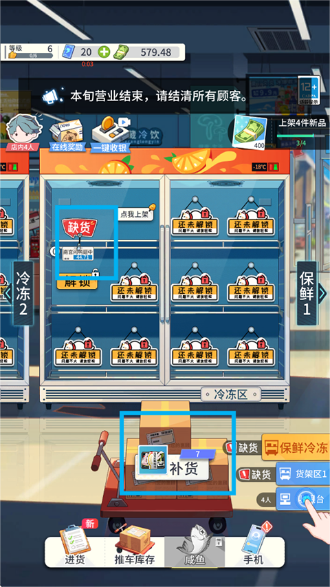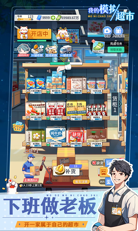 体验超市的经营乐趣,自己进货上架,提升商品价值,扩大超市等级,提升更多的客流!