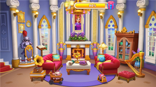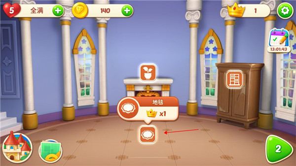 2、在完成消除游戏之后就可以通过消除获得的皇冠进行装饰房间;