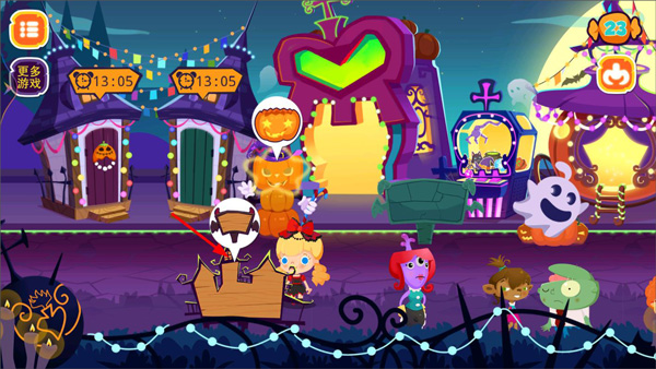 1、无论是糖糖万圣节游戏场景还是人物装扮,或是每个小游戏,万圣节日元素无处不在,一个疯狂的万圣夜从这里开始。