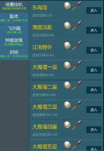 【飞升路】战斗难度中等,产出藏宝图和转生必备道具,也是师门任务巡逻的战斗场景。