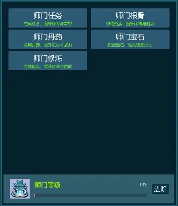 ※师门根骨,只需消耗经验和灵石,提升根骨直接提示各项属性。