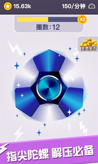 2、达成上方的圈数要求即可获得金币,点击右下角的陀螺图标可以解锁更多的指尖陀螺样式