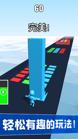 1、最简单的搬砖玩法,不断的叠加各种颜色的砖块,继续刷新分数