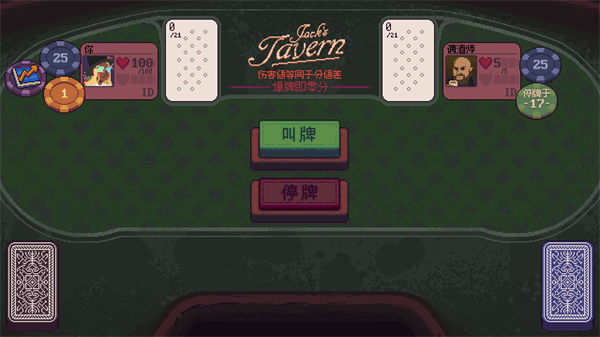 4、开始对局后我们根据手中的牌来选择叫牌或者停牌。