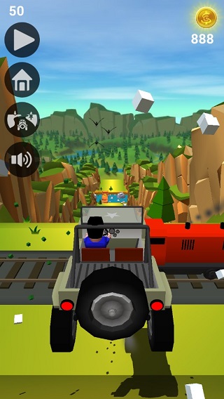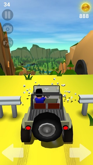 游戏中玩家控制左右按钮控制车辆的方向,中途可以获取金币和道具。
