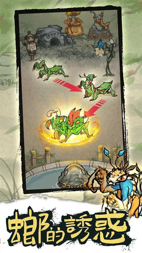 螂的诱惑是一款休闲冒险游戏,游戏独特的放置回合制对战玩法,增强了游戏的策略性和趣味性。在游戏中,玩家需要合成螳螂,击败更强力的昆虫。你还可以捕捉螳螂进行合成交配培育新品种,丰富你的螳螂,收集更多的螳螂图鉴。其中的每种螳螂都有不同对的技能和数值,通过正确的组合可以发挥出更大的作用。游戏中的难度等级也会随着关卡的增加而不断提高,为玩家提供更具挑战性的游戏体验。