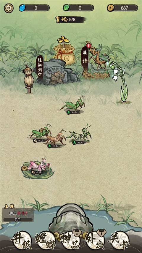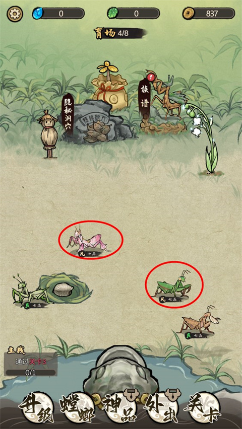 3、可以根据自己的策略和养成经验,挑选出最优秀的螳螂进行培育和应对对手的挑战。