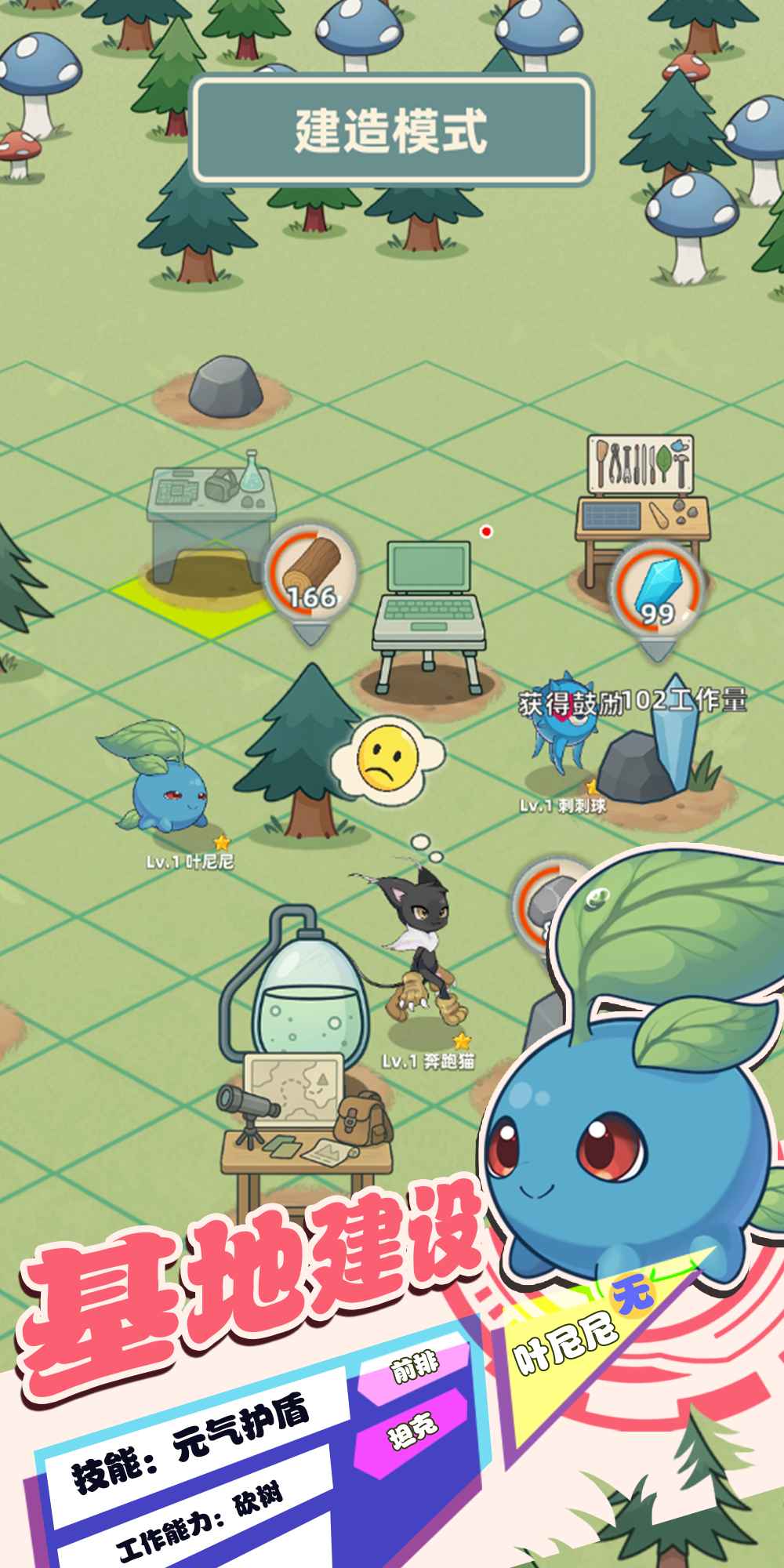 4、玩家还可以建造十几种不同功能的建筑,并自由布局基地,以优化资源产出效率与宠物培养流程。