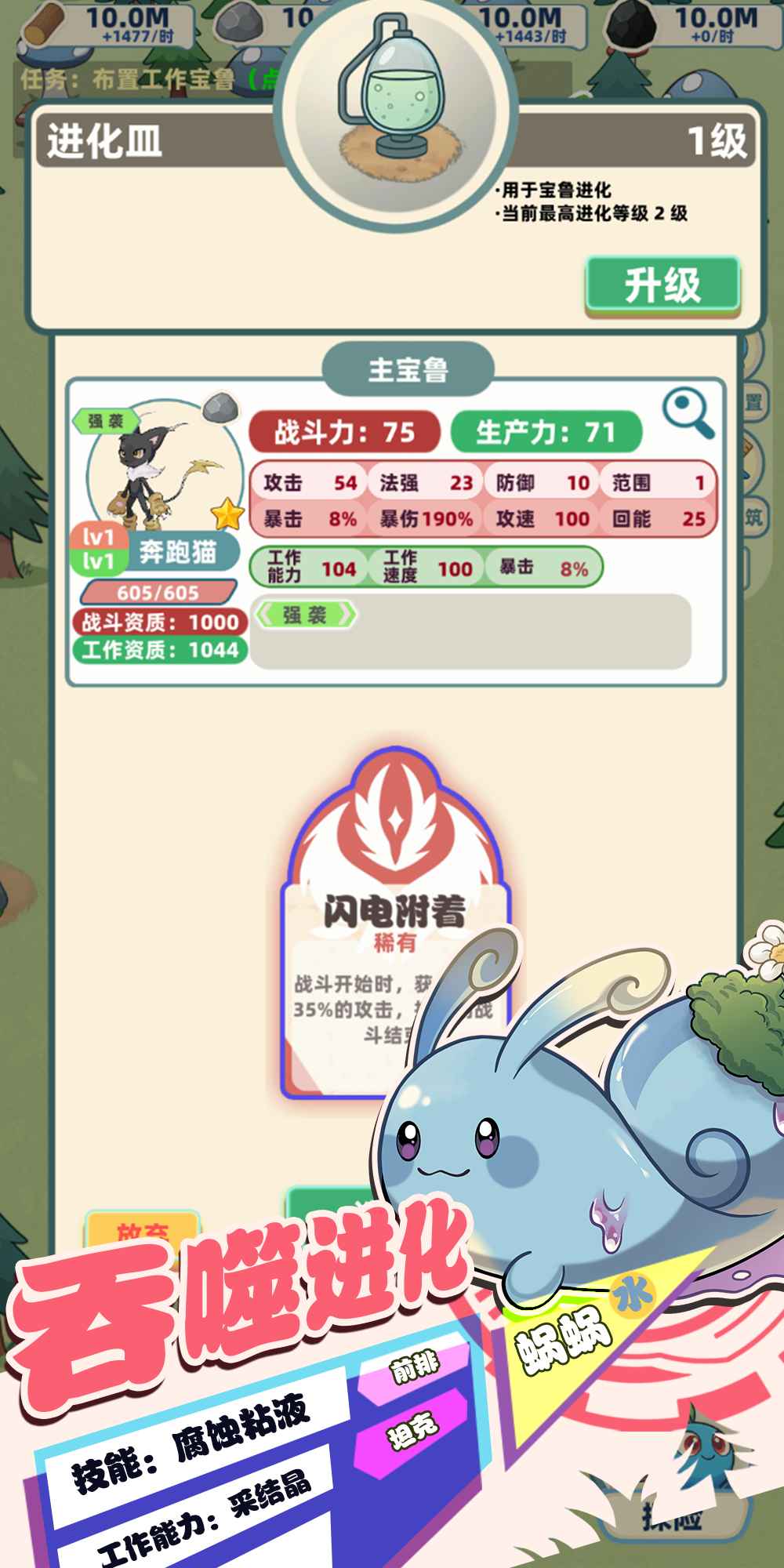 3、游戏融入了放置玩法,玩家离线后仍能获得资源收益,宠物的等级与能力也会持续提升。