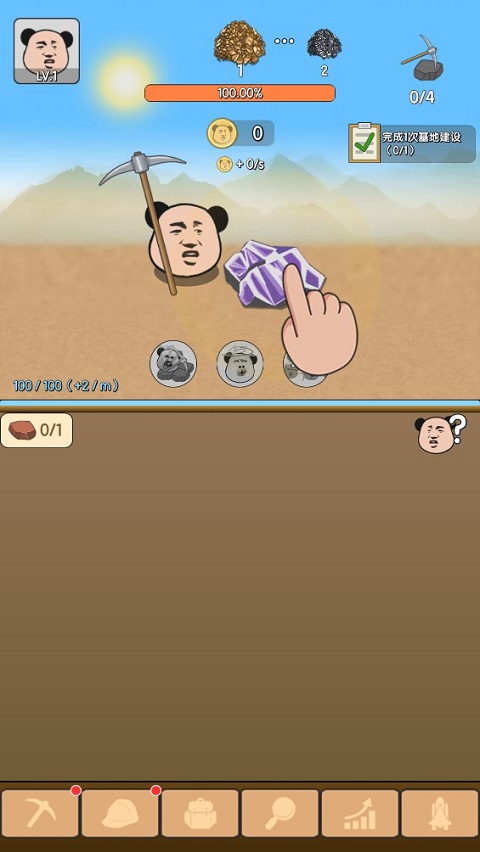 4、再有便是“安全帽”的图标,在满足解锁条件时,可以招募其他矿工兄弟帮你一起挖矿,大幅增长的挖矿效率,能尽快实现熊猫头的“航天梦”。