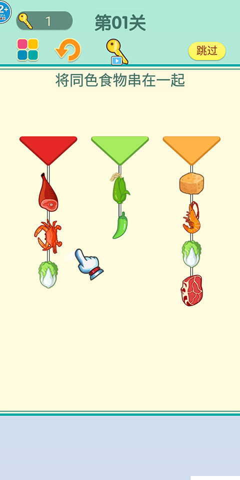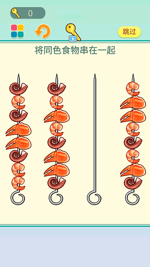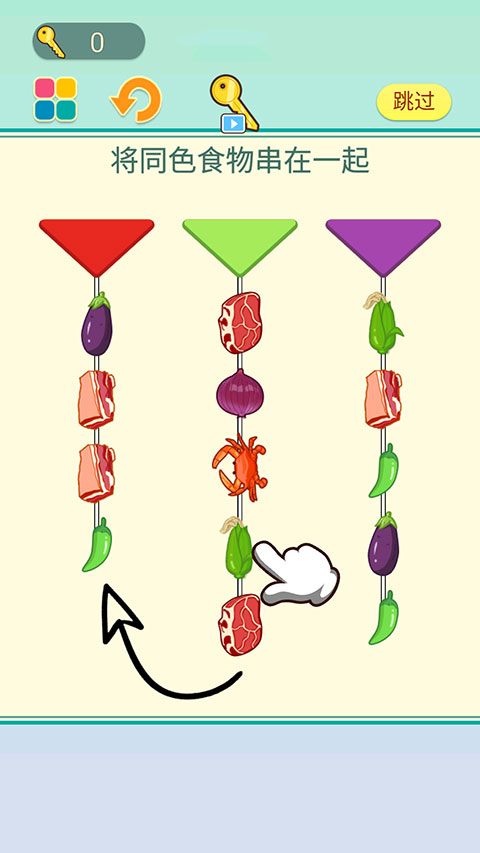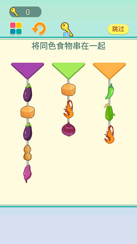 2、可以随意串任意个食物,但相连的两个食物必须保持相同色系。