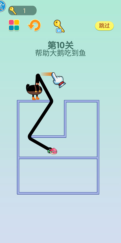 5、帮助大鹅吃到鱼,类似于迷宫小游戏,非常简单。