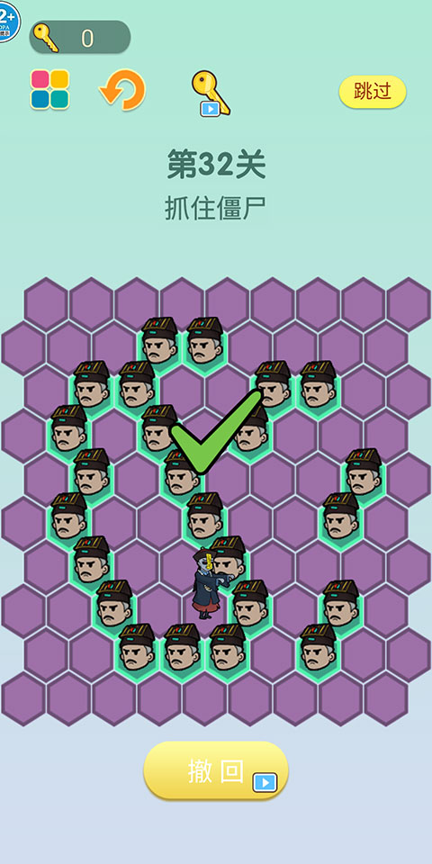 8、抓住僵尸,类似于围棋玩法,僵尸每次移动一格,成功围住僵尸即可获胜。