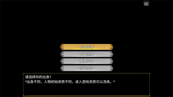 4、选择自己的出生,会一定程度影响到资质,进入游戏后还可以洗练。