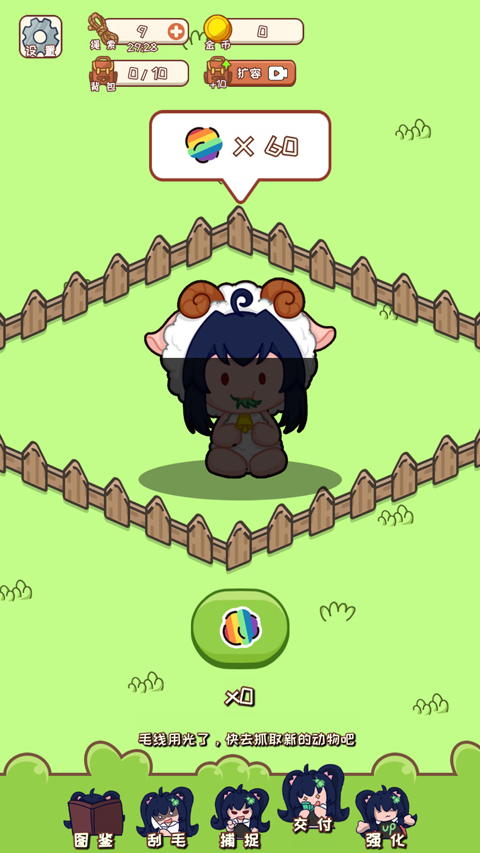 2、抓动物,刮毛,卖钱,升级道具,时间长了会觉得无聊,但也会带来惊喜感。
