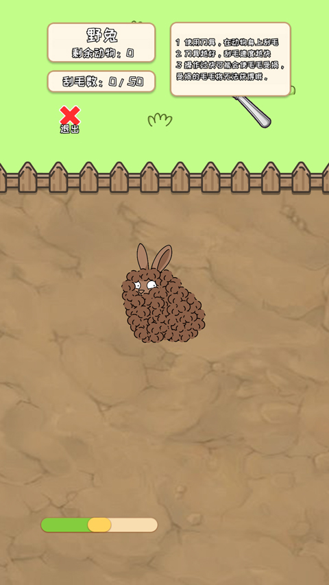 2、刮个痛快:全部收集!刮毛环节!小动物太久没打理自己了,你来助它!拿稳手中的屠龙刀,用细腻的手法轻飘飘刮去它们身上多余的毛。注意,太用力的话小动物们会抗议的。不过没关系,本游戏纯属虚构,没有任何动物因此而受伤。
