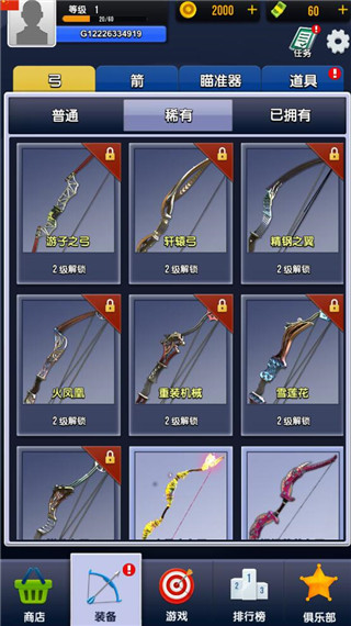 2、用户能够选择自己要使用的弓箭型号,并对其进行自定义的修改和强化,替换不同的弓弦和弓身,喷上不同的颜色,保证与众不同。