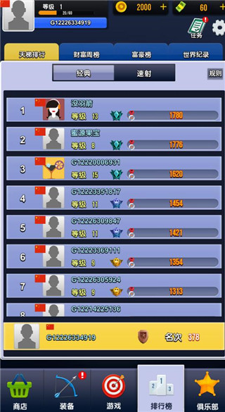 3、玩家可以在锦标赛中展现自己的实力,取得更高的世界排名。也可以与全世界的玩家进行简单的匹配游戏,在几局弓箭对决中展现实力。