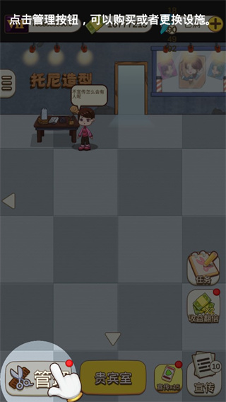 2、玩家可以从装修、招募、宣传等不同角度打造自己的理发店。