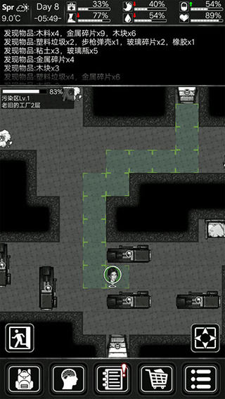 3、第一天刷资源点必出食物:食品店、医院、加油站、首推医院、工厂、五金店、服装店、武器店不要去,没有食物。其它的资源点食物少一些。