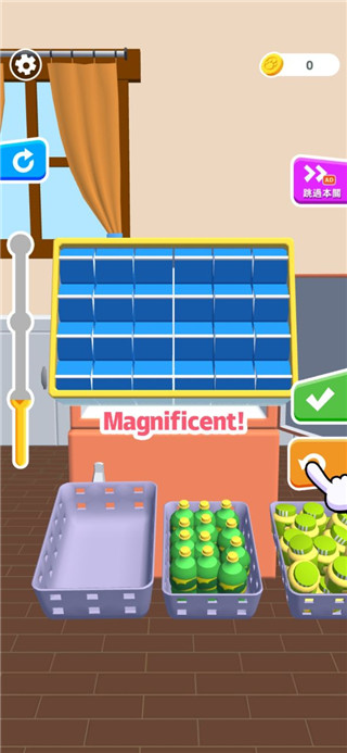 2、每个关卡中都会要求把不同类型的物品放进冰箱,但是需要空间想象能力去进行合理的放置;