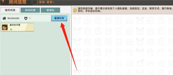 5、在房间信息界面中玩家就可以看到邀请好友的选项了,如图所示。